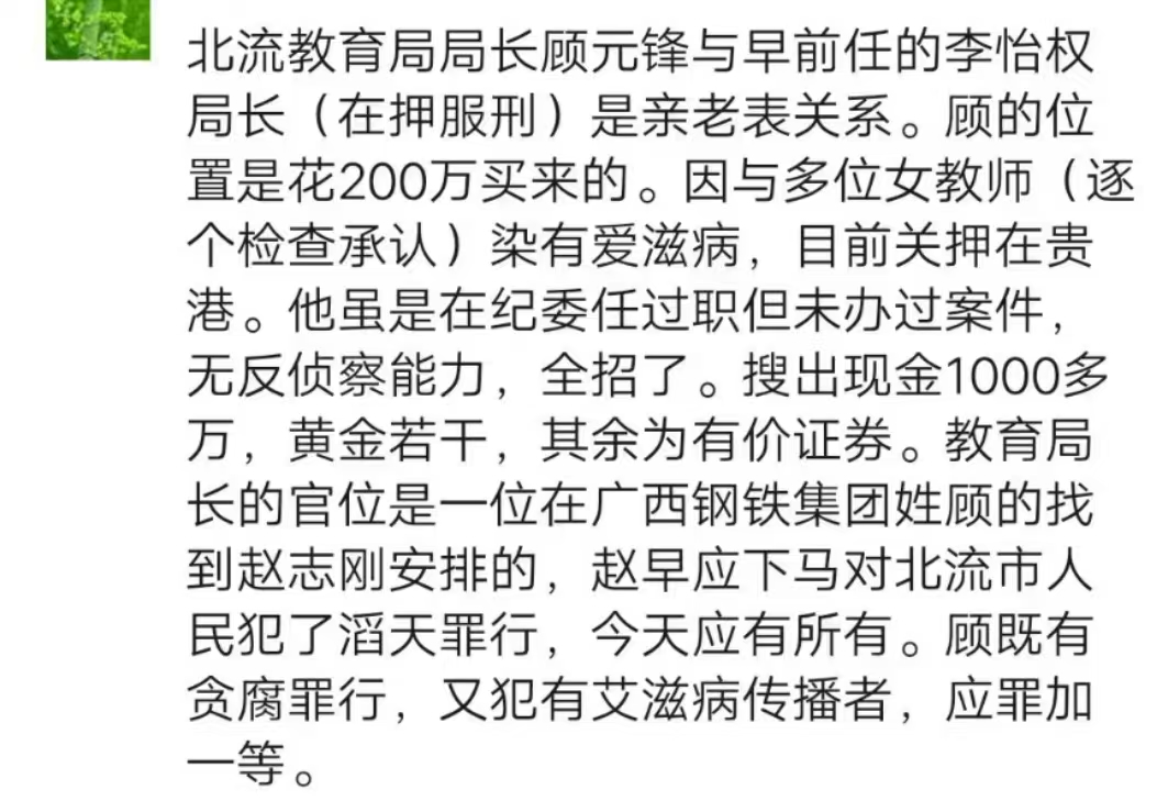 北流教育局的局长被抓了,睡了 40 多个女老师,患有艾滋【不知真假,就当吃瓜了】